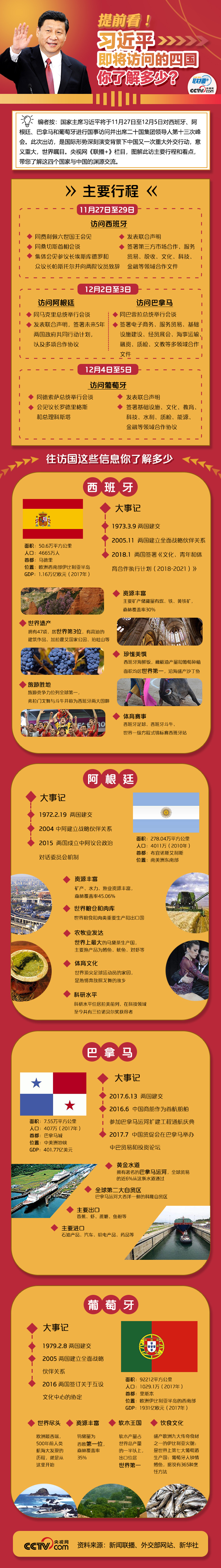 【联播+】国家主席习近平将于11月27日至12月5日对西班牙、阿根廷、巴拿马和葡萄牙进行国事访问并出席二十国集团领导人第十三次峰会。习主席此访意义重大,将继续发出开放合作的时代强音,为世界注入共同发展的正能量。