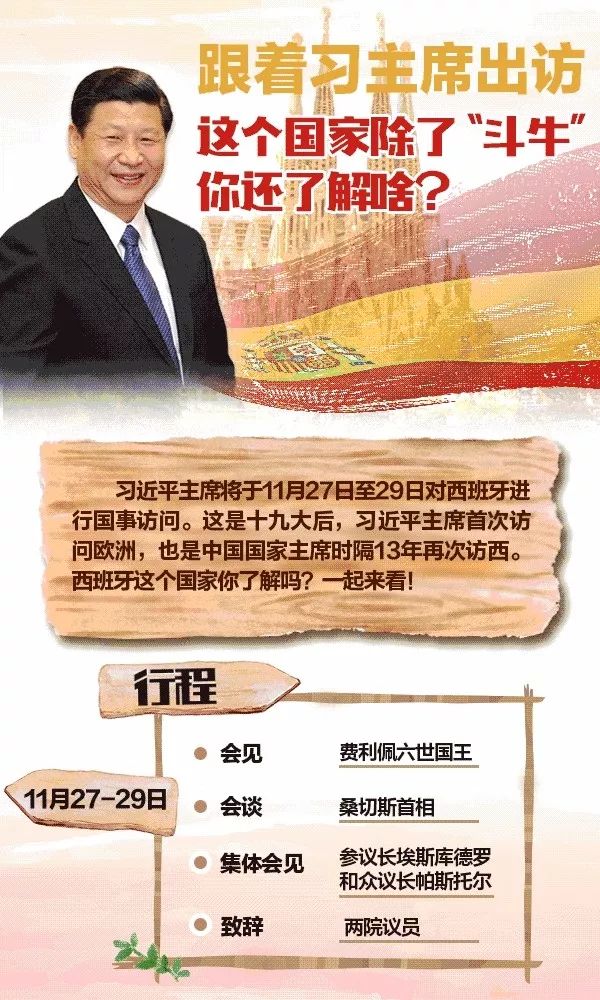 11月27日至29日,习近平主席对西班牙进行国事访问。这是十九大后,习近平主席首次访问欧洲,也是中国国家主席时隔13年再次访西。西班牙这个国家你了解吗?一起来看!