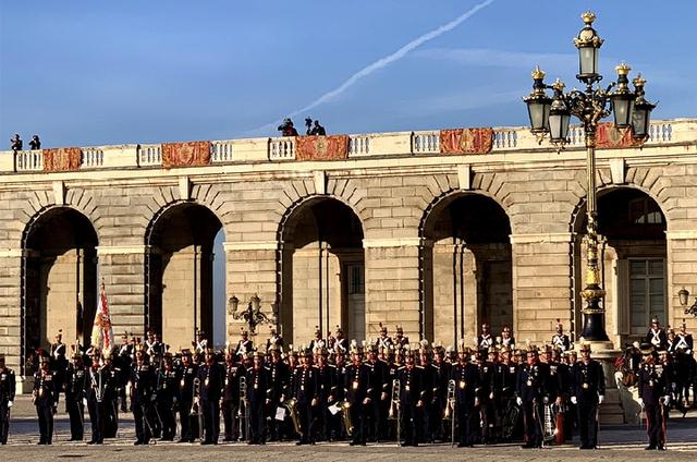 21响礼炮,皇家卫队骑兵护卫,摩托车队、军乐队、步兵方队、骑兵方队……尽显西班牙欢迎外国元首的最高规格。