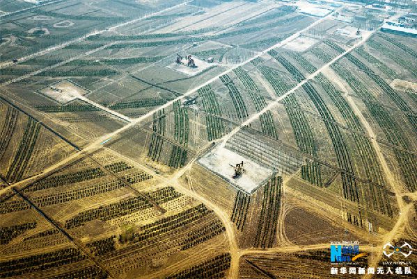 2018年3月30日,俯瞰“千年秀林”。 新华网发 毛鹤然摄