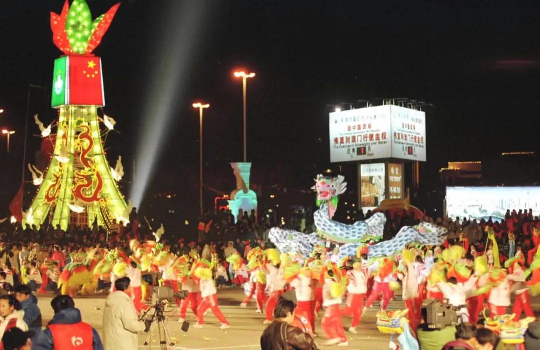 1999年12月20日凌晨,天津市民庆澳门回归活动达到高潮。新华社记者马平摄