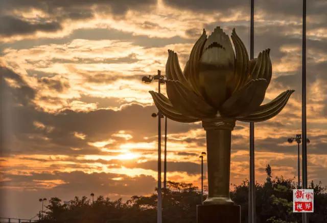 1999年12月20日零时,中华人民共和国国旗和中华人民共和国澳门特别行政区区旗在澳门文化中心花园馆升起。新华社发