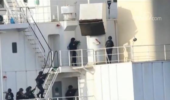 2017年4月9日,第25批护航编队营救一艘遭劫持的图瓦卢籍货船,16名特战队员在掩护下登上货船,将全数船员解救出安全舱,并抓获了3名海盗。