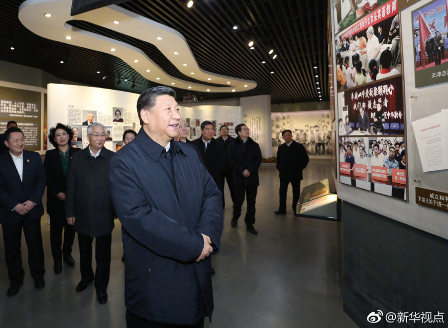 17日上午,习近平乘车来到天津市和平区新兴街朝阳里社区,走进社区志愿服务展馆。这里是全国第一个社区志愿服务组织,30多年来已深入家家户户。社区志愿者们见到总书记十分激动,纷纷讲述自己的“志愿故事”。习近平为社区志愿者们点赞,称赞他们是为社会作出贡献的前行者、引领者。习近平强调,志愿者事业要同“两个一百年”奋斗目标、同建设社会主义现代化国家同行。志愿服务是社会文明进步的重要标志,是广大志愿者奉献爱心的重要渠道。各级党委和政府要为志愿服务搭建更多平台,更好发挥志愿服务在社会治理中的积极作用。(记者张晓松、鞠鹏、丁林)