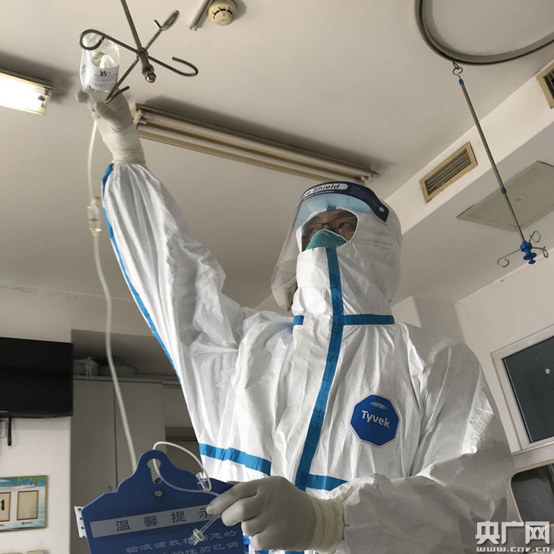 (1月31日,正在武汉金银潭医院ICU忙碌的安医大一附院刘钢留下了一张难得的“工作照”,得知刘钢是从安徽来援助湖北的,一位患者特意用手机给他拍了张照片。央广网发)