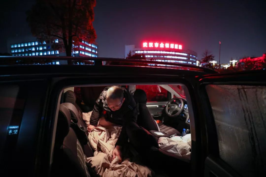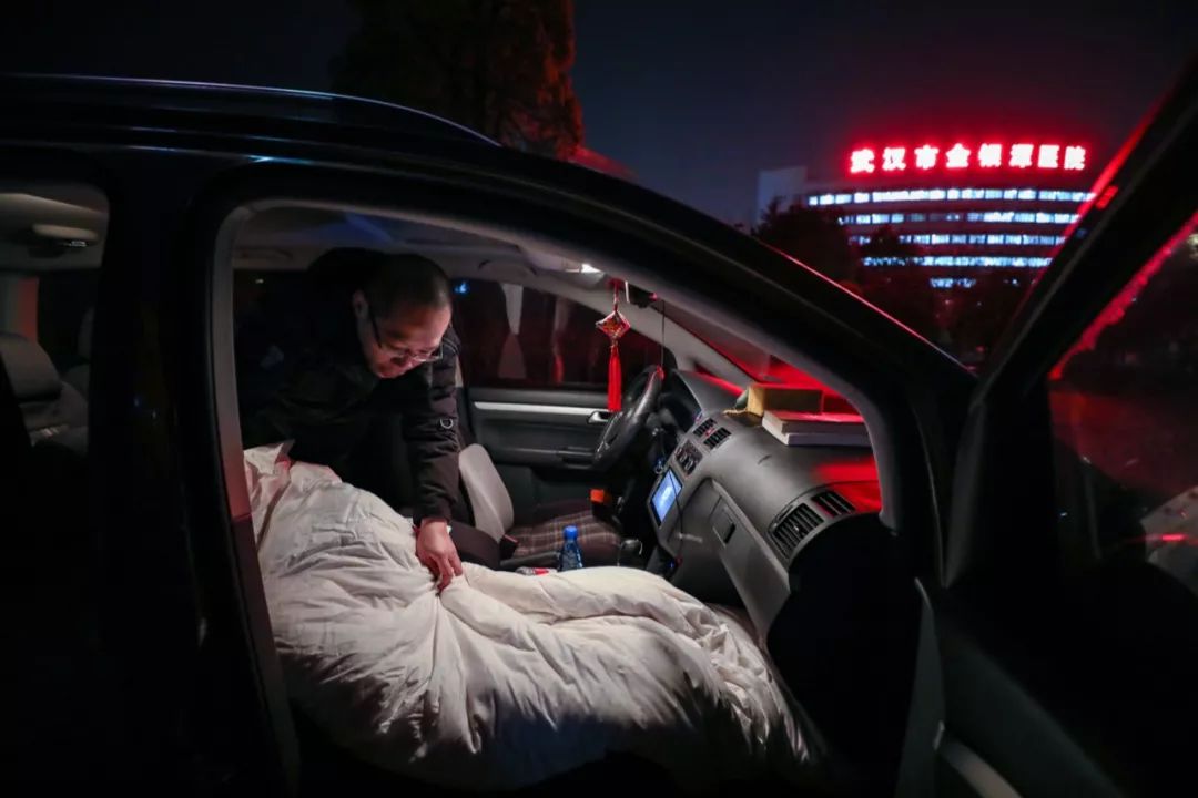 涂盛锦觉得让妻子一个人睡在车上不安心,便干脆把值班室的床让给同事,也住到了车里。妻子睡后排,他睡副驾。