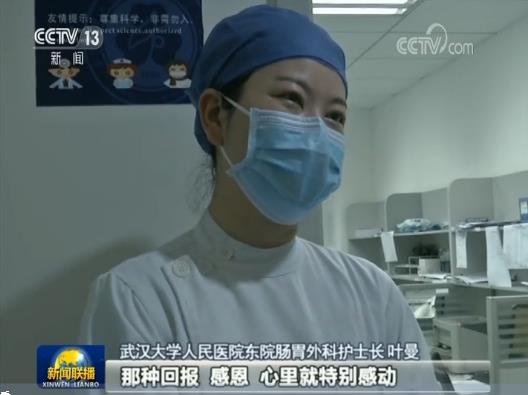 武汉大学人民医院东院肠胃外科护士长 叶曼:突然接收到曾经帮助过的人的回报、感恩,心里就特别感动,就是那种善良的传递,传递下去。