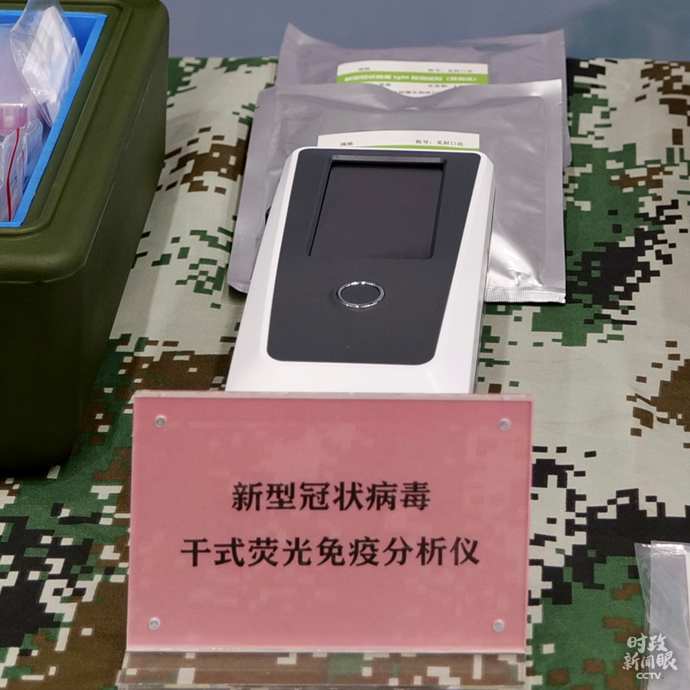 △干式荧光免疫分析仪是配合上图中抗体检测试剂盒使用的。(总台央视记者彭汉明拍摄)