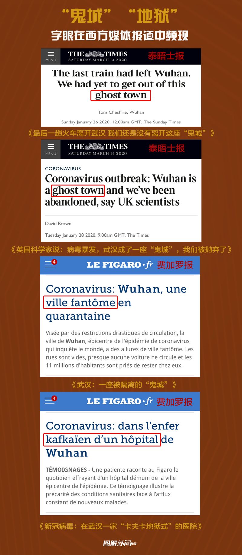 为了防止疫情蔓延全国甚至是全球,中国采取了关闭所有离汉通道的举措。然而西方媒体对此并不“领情”,英国《泰晤士报》(The Times)和法国《费加罗报》(Le Figaro)在其独家报道中多次使用“鬼城”“地狱”这样的字眼来形容武汉(见下图)。要知道,这两家媒体都是世界知名的老牌报纸,在中国饱受疫情之困的时候,他们的报道竟然丝毫没有体现人道主义精神,而是频繁向外界传递不实消息,实在令人大跌眼镜。