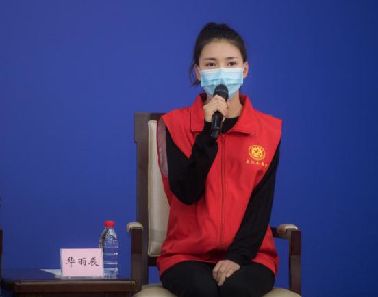 2020年2月23日,国务院新闻办公室在湖北武汉举行国务院新闻办记者见面会,邀请在武汉疫情防控一线的普通工作者讲述他们团结奋战的故事,并回答记者提问。图为武汉市青山区钢花小学音乐教师华雨辰在记者会上。新华社记者 肖艺九/摄
