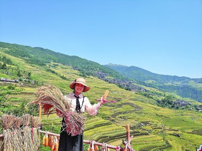 李莎参加龙脊梯田丰收节。华轩摄/光明图片