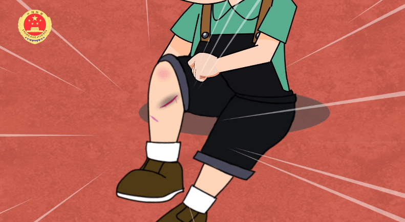 追逐中,一个孩子摔倒了