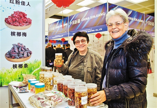 近年来,在“一带一路”倡议推动下,中国和乌兹别克斯坦双边贸易规模快速扩大,越来越多中国产品进入乌市场。图为乌兹别克斯坦中国新疆商品展览会上,乌民众对中国新疆农副食品展现出浓厚兴趣。经济日报-中国经济网驻塔什干记者 李遥远摄