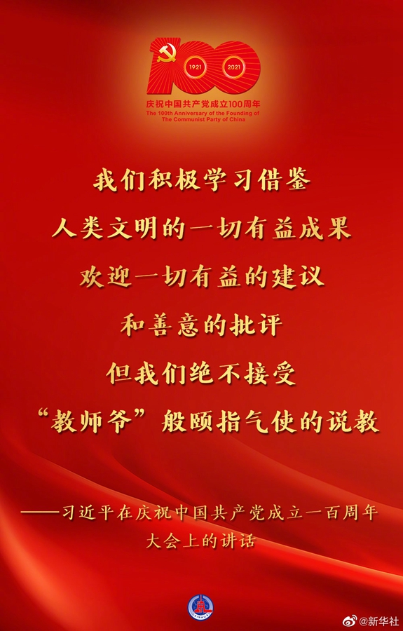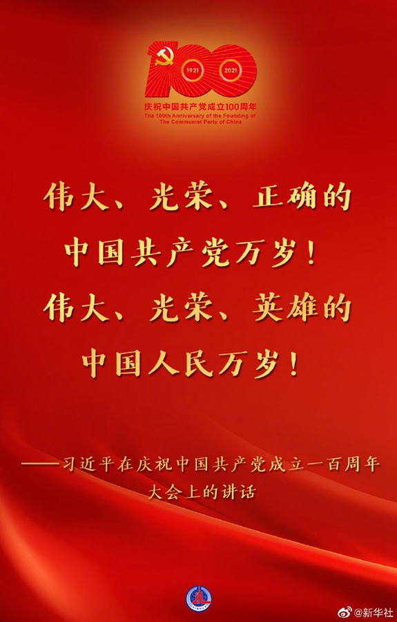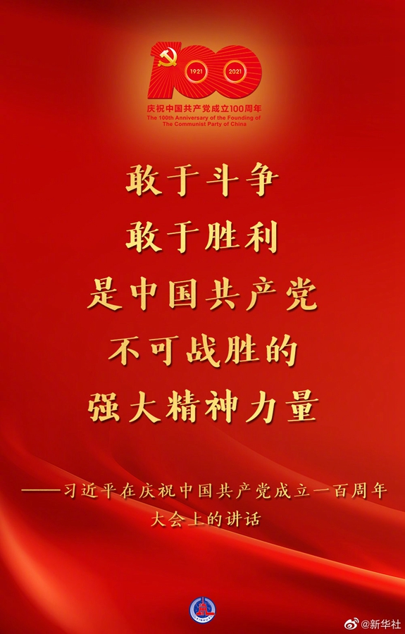 习近平在庆祝中国共产党成立一百周年大会上的讲话金句