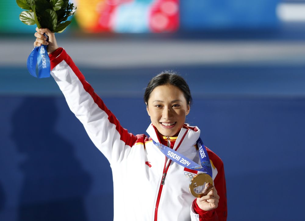 在索契冬奥会速度滑冰女子1000米比赛中,中国选手张虹以1分14秒02的成绩夺得冠军。这是中国队在冬奥会历史上夺得的第一枚速滑金牌。