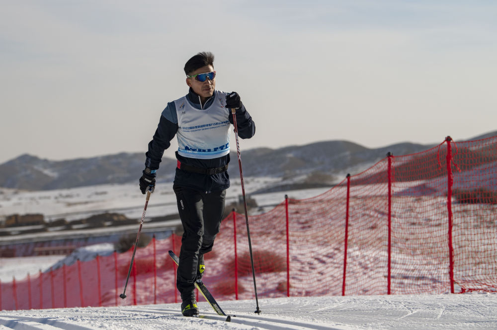 ↑这是吐尔松江·布尔力克在2021-2022国际雪联越野滑雪积分系列赛温泉站男子个人10公里(自由技术)的比赛中(2021年11月22日摄)。