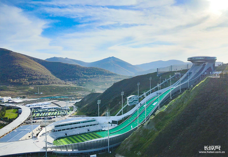 航拍国家跳台滑雪中心“雪如意”。长城网·冀云客户端记者 马宁 摄