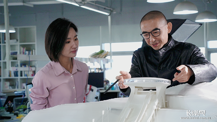 张利向记者讲述雪如意设计理念。长城网·冀云客户端记者 马宁 摄
