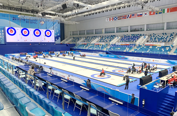 10月23日,“相约北京”2021年世界轮椅冰壶锦标赛在国家游泳中心开赛。人民网记者 胡雪蓉摄