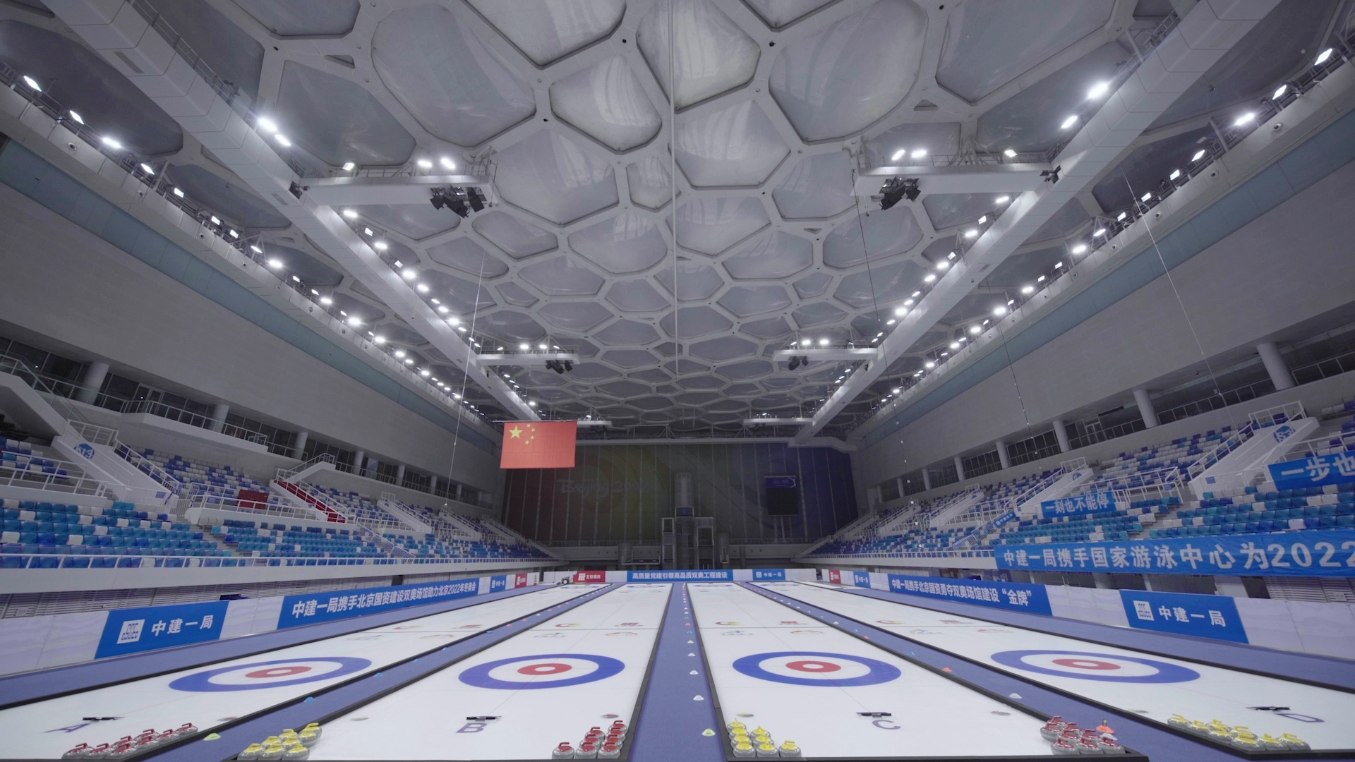 2019年12月,国家游泳中心成功举办了中国青少年冰壶公开赛,并完成了赛道认证,成为第一个开启了高规格冰上赛事、并率先进入实战测试阶段的冬奥场馆。