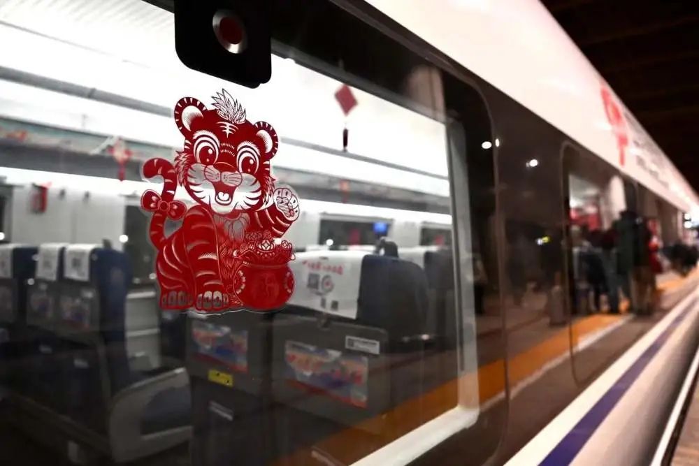 “我上车走过来的时候,发现都贴上春联了,有点过节的气氛了。”乘坐G6737次列车上的裴先生说。(记者 王璐 北京报道)