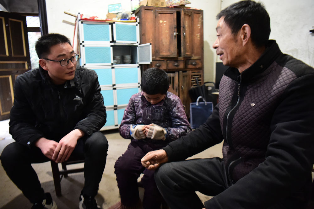 “雪下得紧,你们别出门了,缺什么告诉我。”1990年出生的陈世贤熟门熟路,朝着正在院里喂羊的老田招呼道。听到陈世贤的声音,田扬科9岁的小孙子撒着欢从房里跑出来,非要拉着他一起打雪仗。