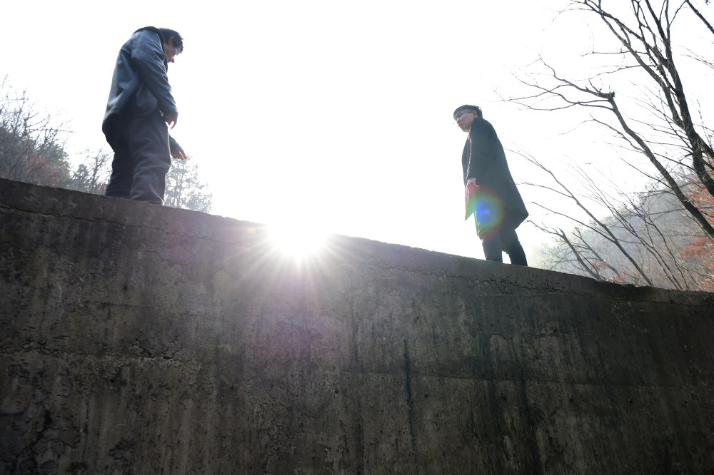 图为刘杰(右)跟随护水员来到村庄水源地查看水质。(新华社记者 黄博涵 摄)