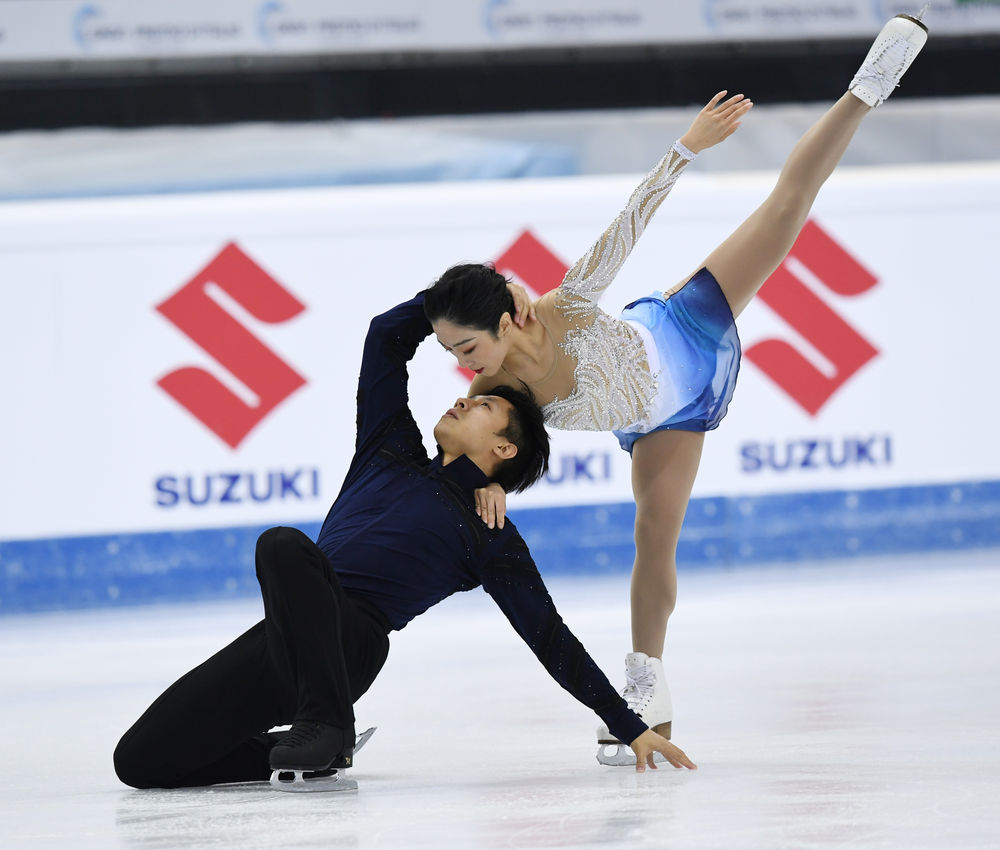 2021年11月6日,在意大利都灵举行的2021-2022赛季花样滑冰大奖赛意大利站双人滑比赛中,中国选手隋文静/韩聪夺得冠军。新华社记者 金马梦妮 摄