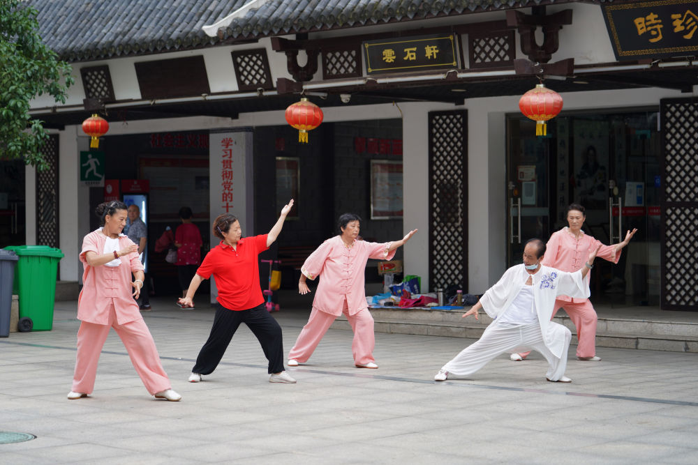 武汉市汉阳区江欣苑社区的居民在健身(2021年7月18日摄)。新华社记者 邢广利 摄