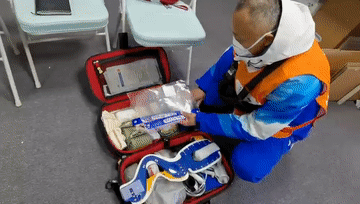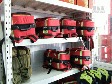 放着氧气筒、纱布、止血绷带等