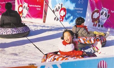 2月5日,小朋友在北京陶然亭公园享受冰雪运动带来的快乐。今冬北京市属公园共计开放11处冰雪嬉戏体验场地,提供40余种冰雪活动,方便市民和游客“逛公园、上冰雪、迎冬奥”。