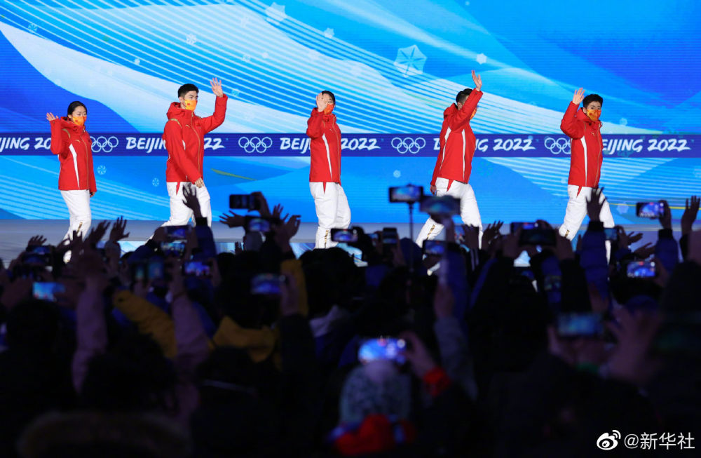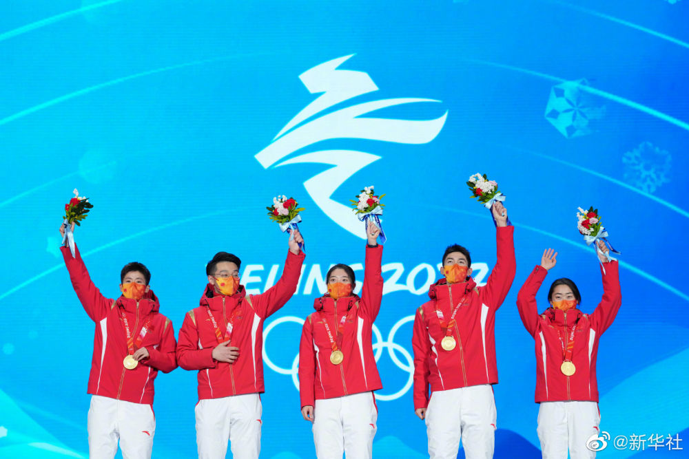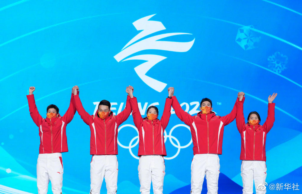 【中国短道速滑队登上最高领奖台】2月6日,北京2022年冬奥会短道速滑混合团体接力奖牌颁发仪式在北京赛区颁奖广场举行,获得冠军的是中国短道速滑接力队。转发高清大图,看中国健儿登上最高领奖台,看五星红旗高高飘扬!