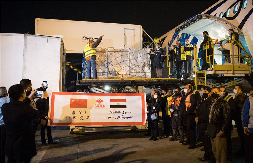 2021年2月23日,中国援助埃及的首批新冠疫苗抵达开罗国际机场。新华社记者 邬惠我 摄