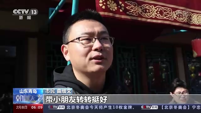 山东青岛市民 曲增文:草莓采摘、滑雪、小吃、庙会,带小朋友转转挺好。有年味儿了,年味儿就比在家里浓很多了。