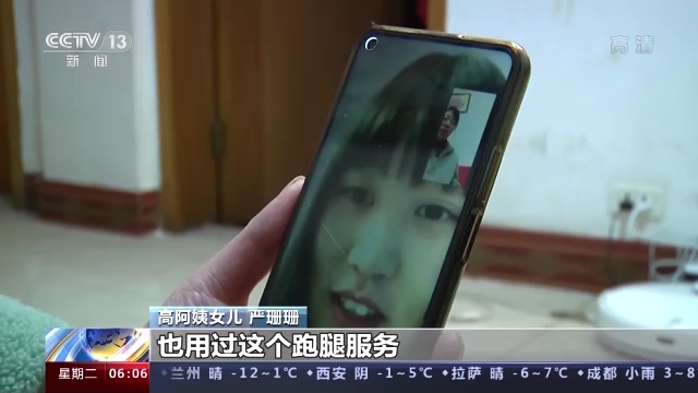 高阿姨女儿 严珊珊:她在手机上只用App点一下,她就不用弯腰了,因为之前我在国内也用过这个跑腿服务,挺好的,想着我又不在国内,想着用一下,就正好让小哥教一下我妈妈怎么用。