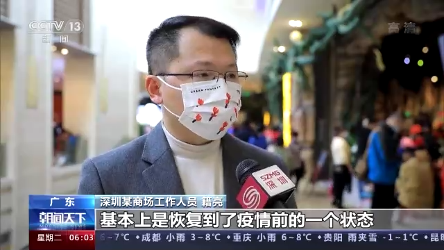 广东深圳某商场工作人员 籍亮:每日(商场)平均营业额已经接近500万的水平,基本上恢复到了疫情前的状态。