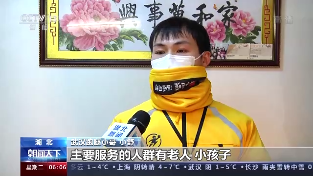 湖北武汉跑腿小哥 小舒:我们提供了有帮买、帮送和帮取,主要服务的人群有老人、小孩子,特别是老人这方面比较多。
