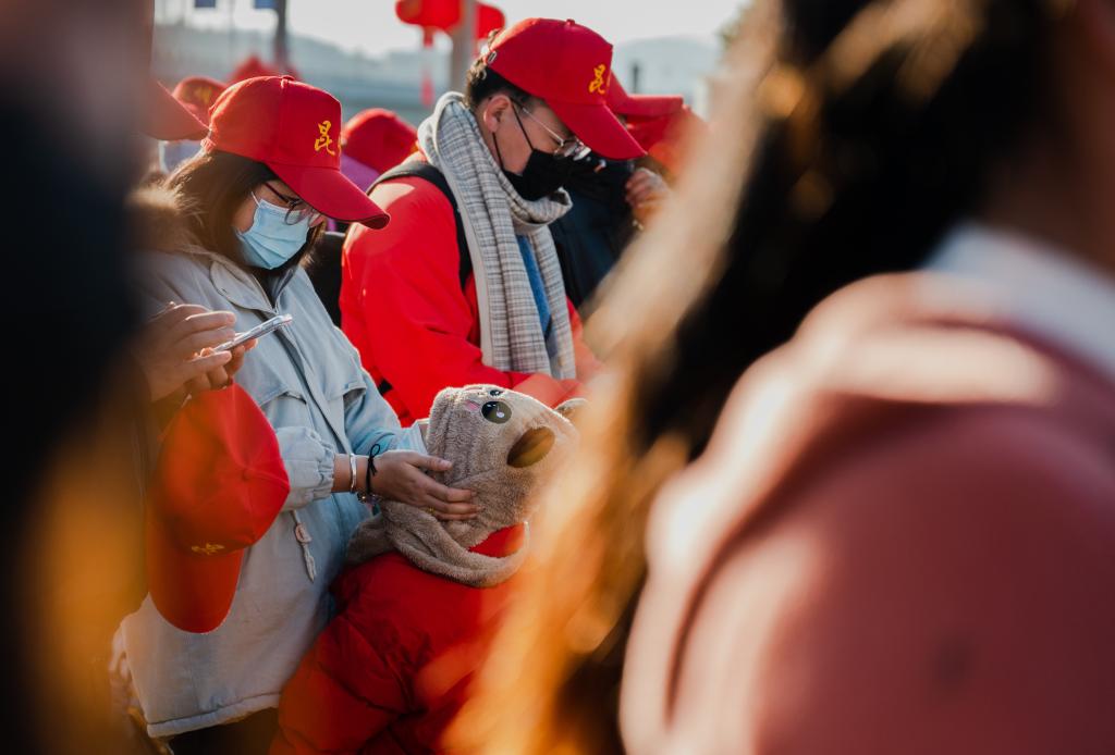 2月8日,昆明南站人潮涌动。昆明市寻甸县鸡街镇泽和村村民张云和妻子张绍芬头戴小红帽,背着行囊,在人社部门、铁路部门工作人员有序组织引导下,和老乡们统一乘坐高铁外出务工。