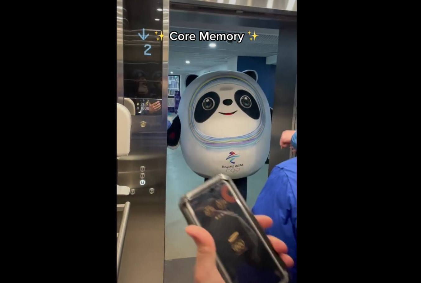 从布里彻拍摄的画面来看,几名外国运动员搭乘的电梯在某一层停留时,一名乔装成“冰墩墩”的工作人员刚好在等电梯。而就在“冰墩墩”想把电梯让给运动员,自己等下一趟时,电梯门却被重新打开,“冰墩墩”也被热情的外国运动员连忙拉进来。