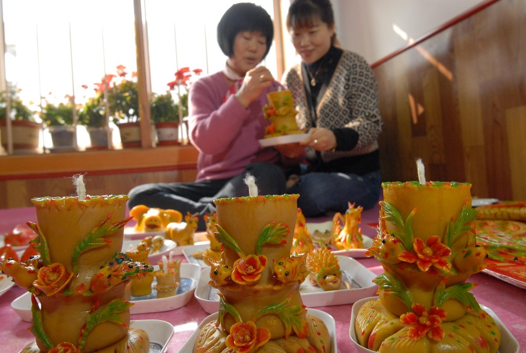 “这些面灯可绝不仅仅是艺术品,还能吃。”宋玉芳说,面灯都是由豆面做的,点亮时用的油也是豆油,上的颜色也都是一些食用色素,所以还是非常卫生的。