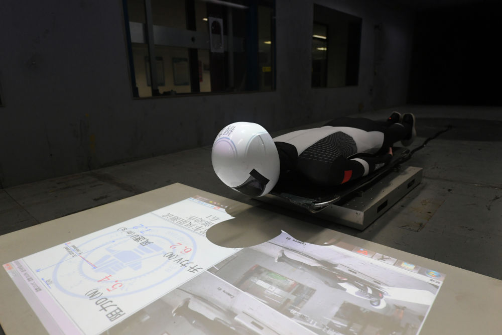 在北京交通大学风洞实验室,风洞辅助训练系统显示的信息将运动速度、运动风阻力、运动姿态及测试指令实时反馈给测试人员(2021年7月16日摄)。新华社记者 任超 摄