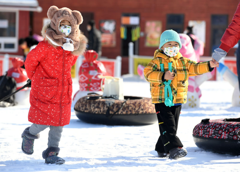 小朋友在北京国际鲜花港冰雪嘉年华游玩(1月8日摄)。新华社记者 任超 摄