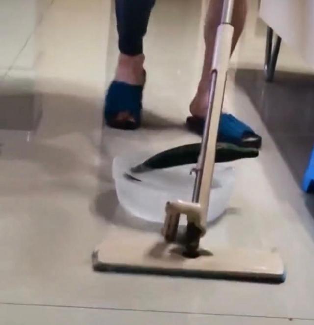 还有冰壶爱好者把黄瓜冻在一盆水里当手柄,在家里的地面上玩起了冰壶,看起来自制的“冰壶”在地砖上滑的很不错。