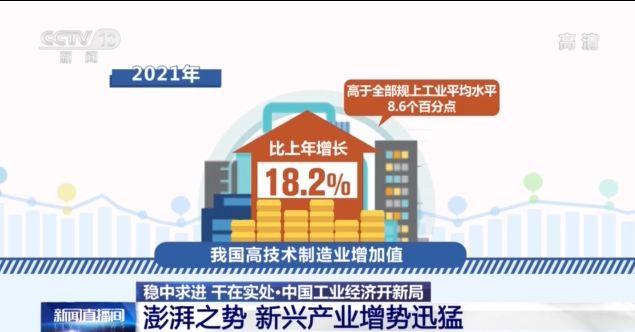一开年,处处干劲十足,我国工业领域真是“新”意澎湃。其实一直以来,我国新兴产业的发展势头都可以用“迅猛”这个词来形容,2021年我国高技术制造业增加值比上年增长18.2%,高于全部规上工业平均水平8.6个百分点。
