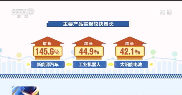 主要产品也实现较快增长,新能源汽车增长145.6%,工业机器人(10.320, -0.08, -0.77%)增长44.9%、太阳能(9.020,0.13,1.46%)电池增长42.1%。