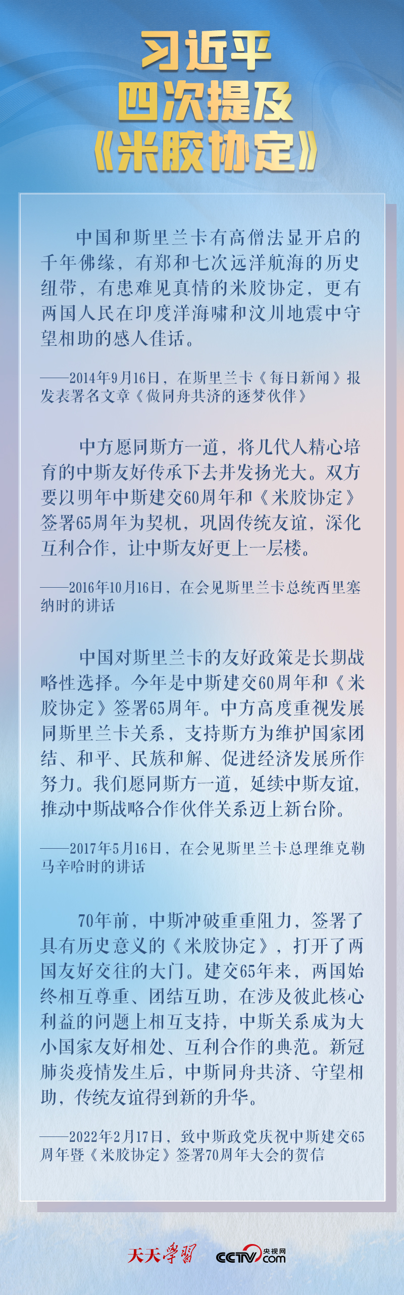 天天学习 2月17日,习近平总书记向中斯政党庆祝中斯建交65周年暨《米胶协定》签署70周年大会致贺信。