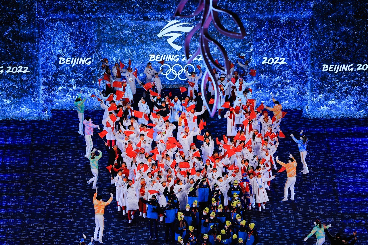 北京冬奥会是一场国际交流的盛会,也是一场中华传统文化与奥林匹克精神和合共生的盛会。今天,当我们再次打量北京冬奥会的成功举办,越发意识到“世界大同,天下一家”多么深入人心,人类命运共同体的理念多么契合时代潮流。闭幕式中,91面旗帜与场内的“中国结”相呼应,展现了“更团结”的奥林匹克精神,更表达了“世界大同、天下一家”的价值追求。