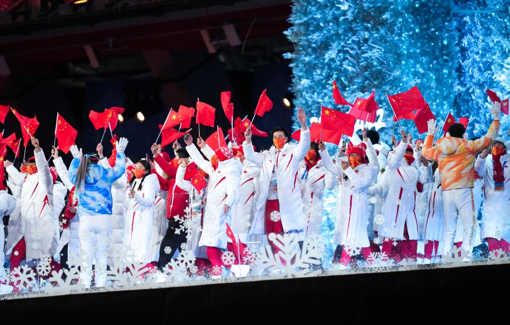 2月20日晚,中国代表团成员在北京第二十四届冬季奥林匹克运动会闭幕式中入场。新华社记者鞠焕宗摄