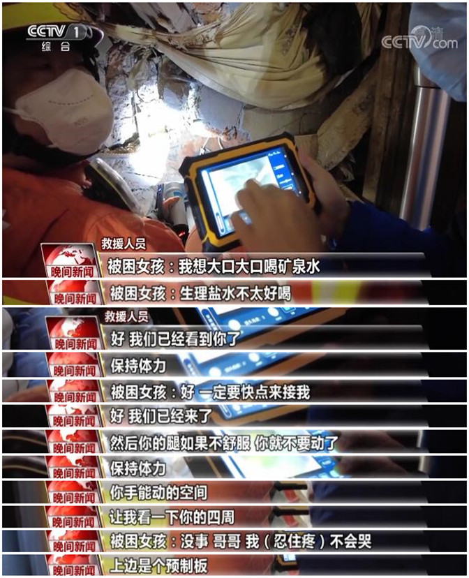 因为救援通道极为狭小,救援人员无法进入,为了避免再次倒塌风险,也不能对通道进行强度较大的破拆,救援遇到了极大困难。2日凌晨,救援人员向内递送了音视频探测设备,与被困者建立了视频联系。