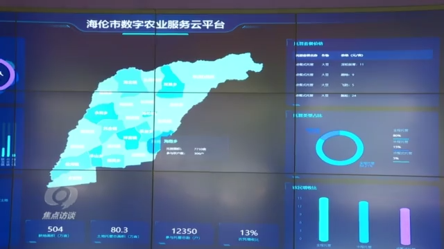在绥化海伦市数字农业指挥中心,技术人员利用地面监测网络收集到的土壤、种子等信息以及天气变化数据,通过大数据分析,能够对田间作物生产提供早期风险预警和监管。